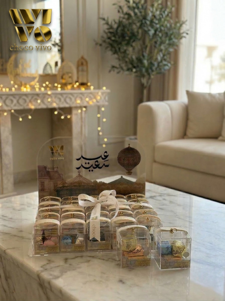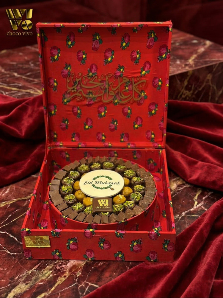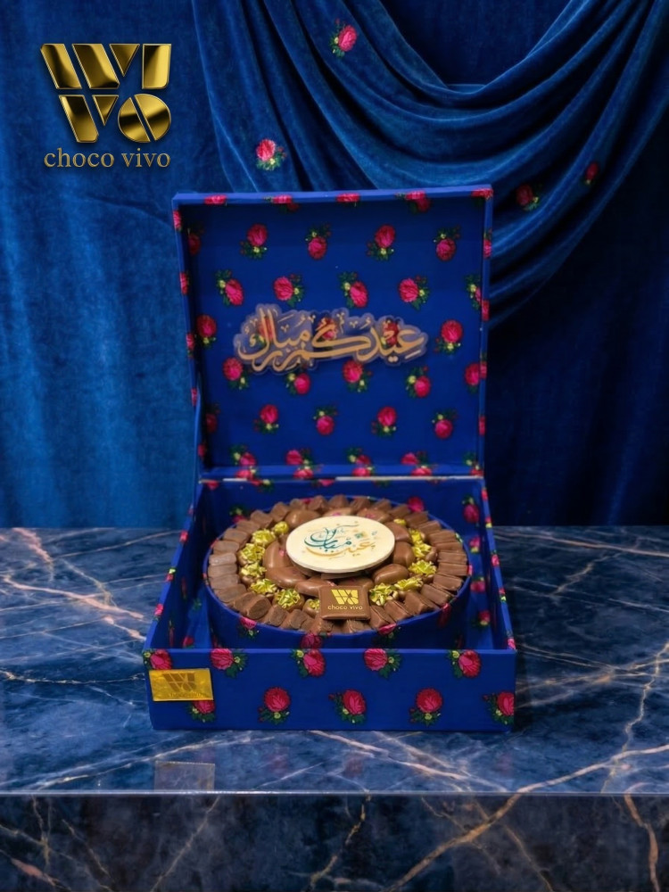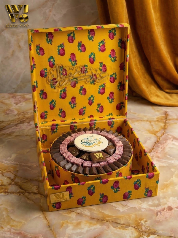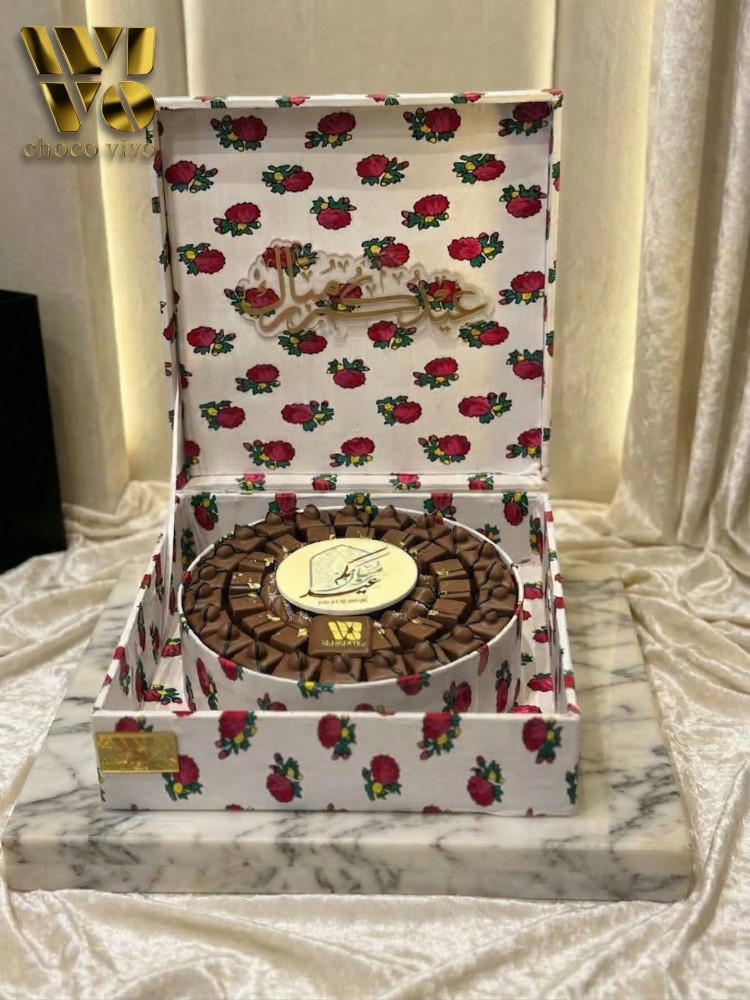 بوكس العيد من الشكولاتة الفاخرة المزينة بالورد الصناعي