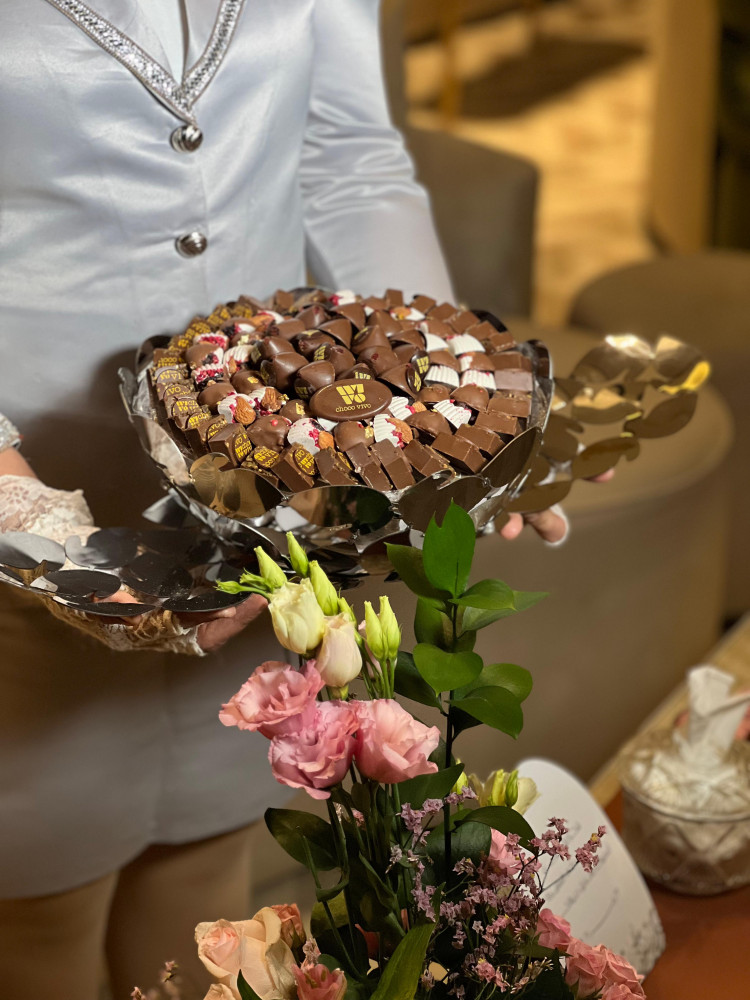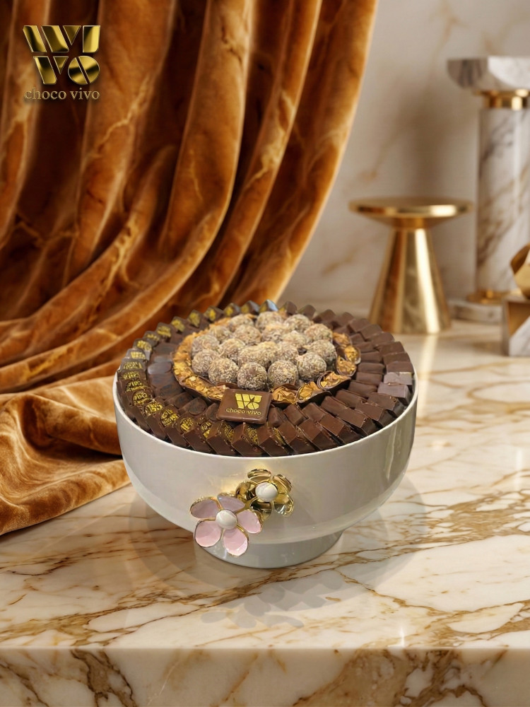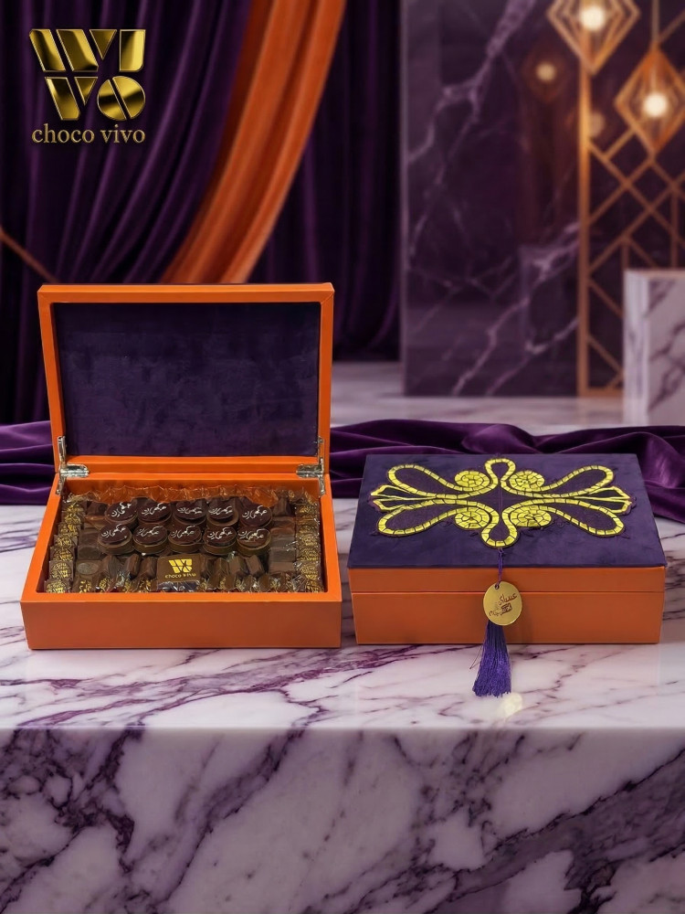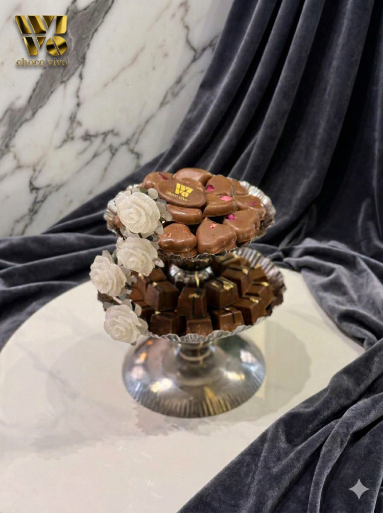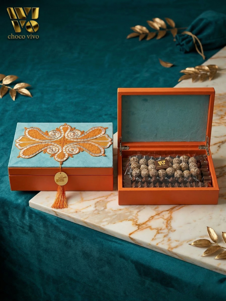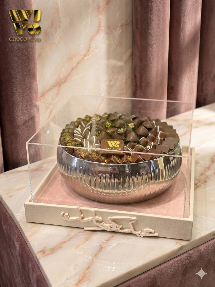 بوكس العيد من الشكولاتة الفاخرة المزينة بالورد الصناعي