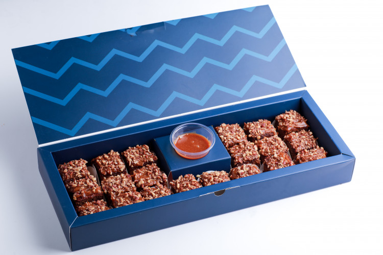 ( قطع حلومي مشوّح مع اضافة صوص البيستو مع قطع الفلفل الرومي والجرجير واضافة دبس الرمان)