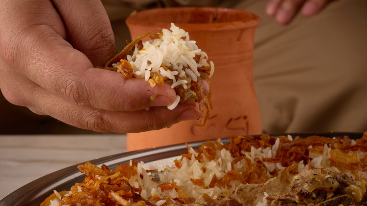 نفر حنيذ مدخن على الحطب لمدة 6 ساعات يقدم على الطريقة الامريكية مع الأرز المزة الأبيض 99 ريال (1455 سعرة حرارية)